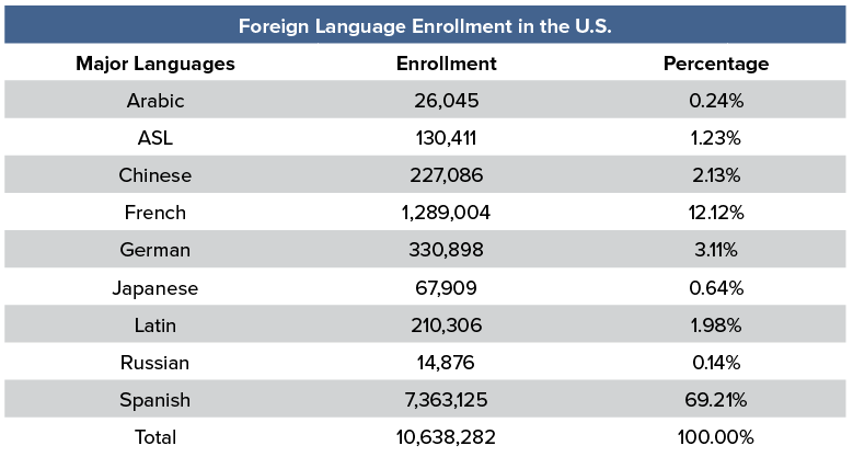 *Source: American Councils for International Education, American Council for the Teaching of Foreign Languages, Center for Applied Linguistics: The National K-12 Foreign Language Enrollment Survey (2017)